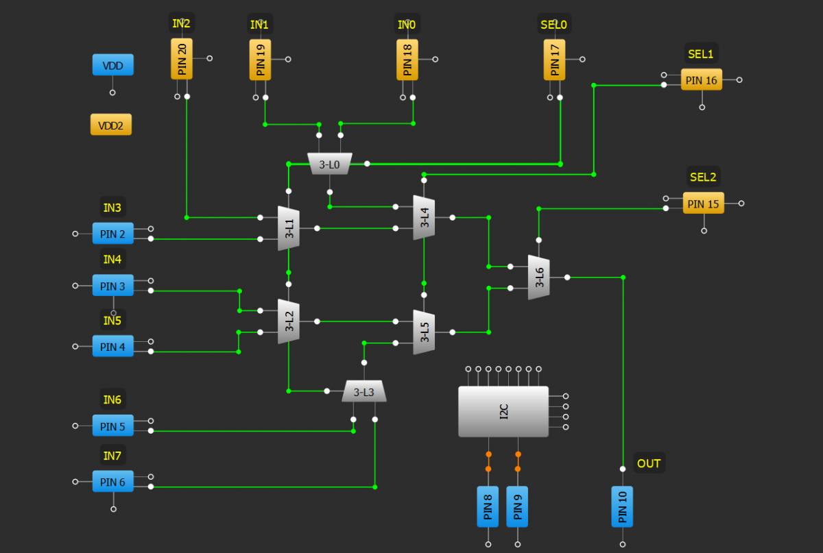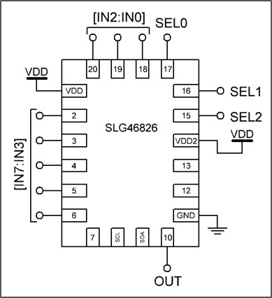 多路复用器或MUX用于从多个输入信号中选择输出。这用于跨单行需要发送多条通信线路雷竞技安卓下载的应用。通过使用GreenPak作为MUX,传输中的延迟时间可以是纳秒,与离散逻辑IC相当。