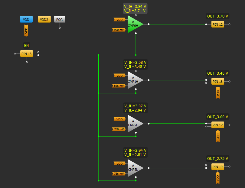 - Connect pin toPWR UP.pin of ACMP0H, ACMP1H, ACMP2L, and ACMP3L.