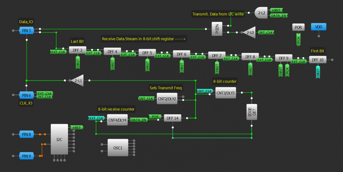 - Configure a shift register to store incoming data, shown inTechnique: Building a Shift Register。可以用i读取移位寄存器2C。