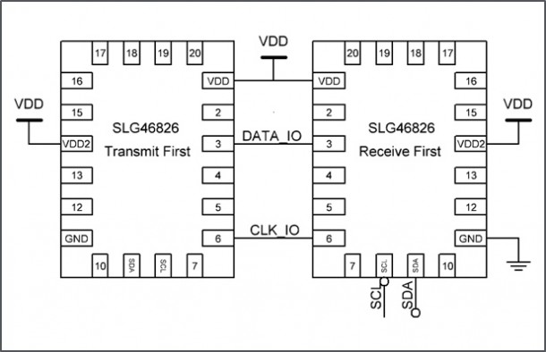 Bi-directional communication systems are critical in applications where board area is scarce, or limited contacts are used to connect between devices (for example, a wearable and charger). A receive-first design indicates that this device will always be enabled second in the transaction.