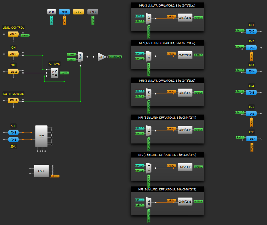 - Connect the DLY outputs to push pull output pins.