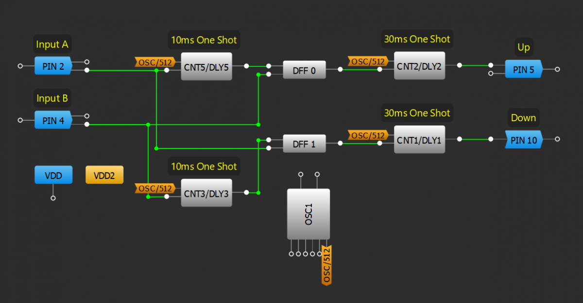 - SetCNT3/DLY3andCNT5/DLY5to theOne shotmode with the desired filter time.