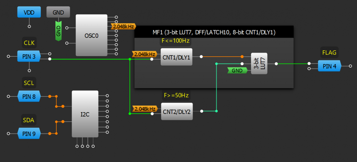 - 当频率超出所需的频率范围时,将LUT配置为高电平。