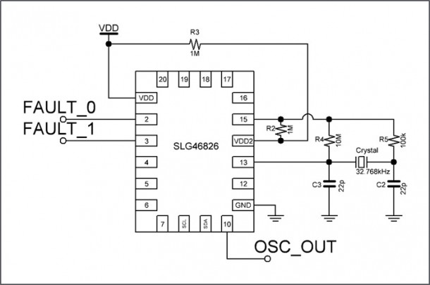 - 将晶体振荡器的另一个节点连接到GreenPAK的振荡器输入。