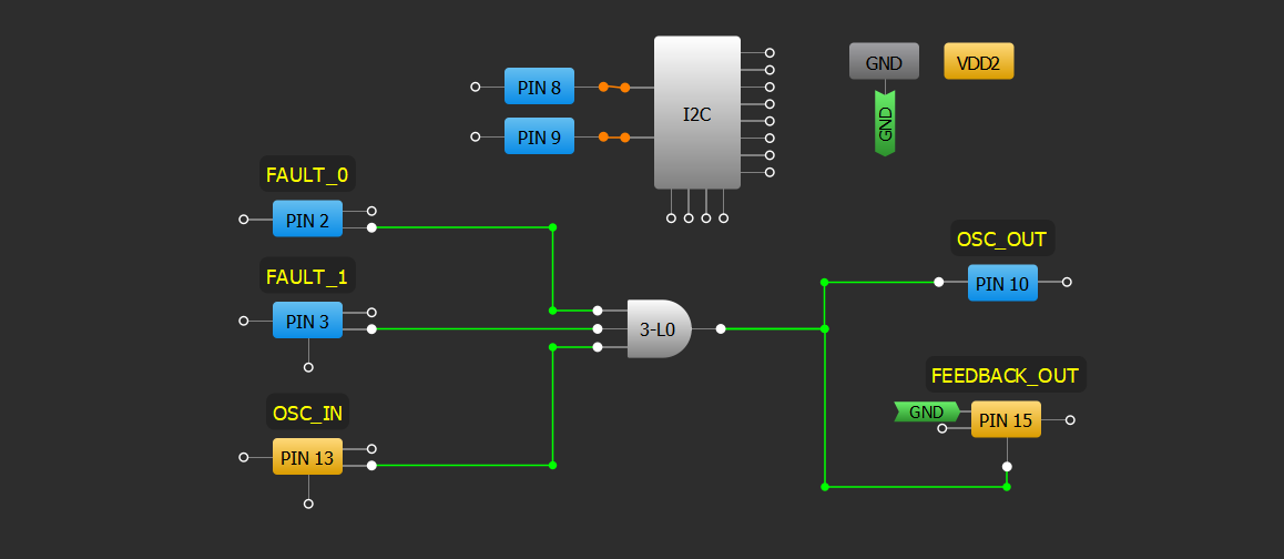 - Connect resistor and capacitor to feedback output node. The other resistor node should be connected to VDD2 and the other capacitor node should be connected to ground.
