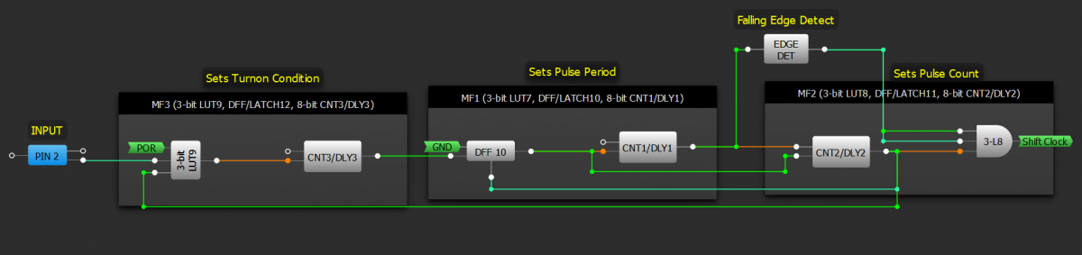 这种技术可以在任何GreenPak中完成。一些GreenPak中的多功能块有助于减少组件计数。