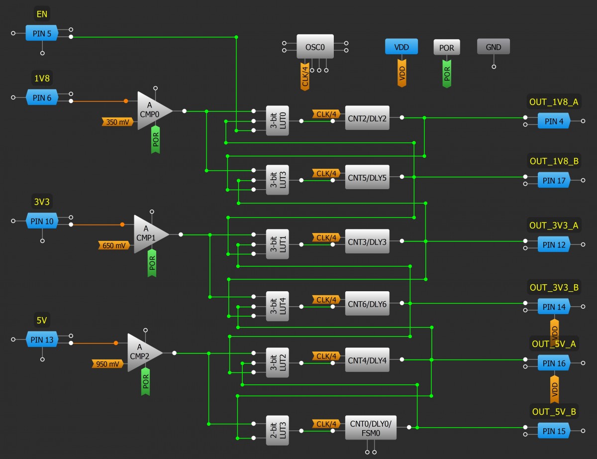 - Power on ACMPs, connecting POR toPWR UPand configure the在-每个具有所需电压阈值水平的源。