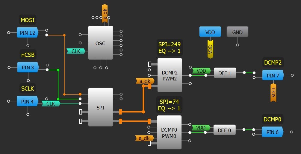 可以选择SPI以8位或16位的形式工作。请记住,SPI macrocell不能在同一程序文件中发送和接收串行数据。它必须在S2P或P2S模式下设置。