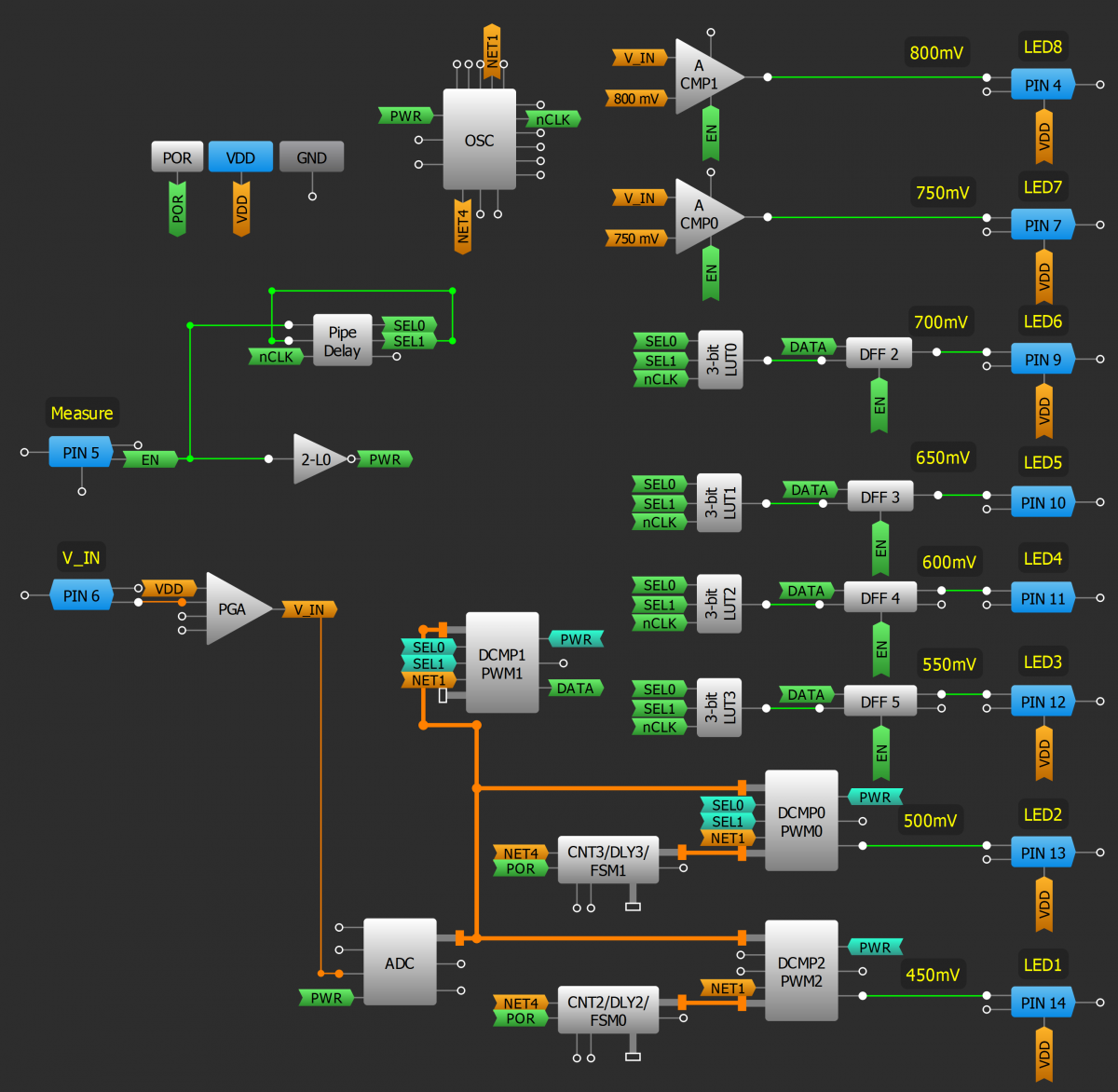 - Any GreenPAK with ACMPs, DCMPs, and an ADC
