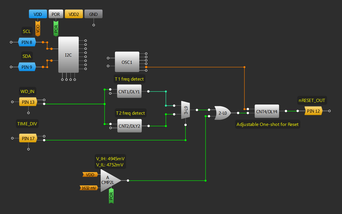 - Design the digital logic to combine active signals from undervoltage and watchdog timeout.