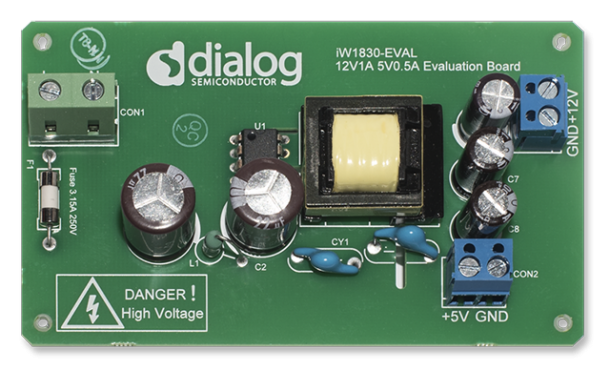 提供了一个soluti iW1830-EVAL评估董事会on for development of 15W dual output power supplies for white goods, home appliances, industrial control equipment and network devices.