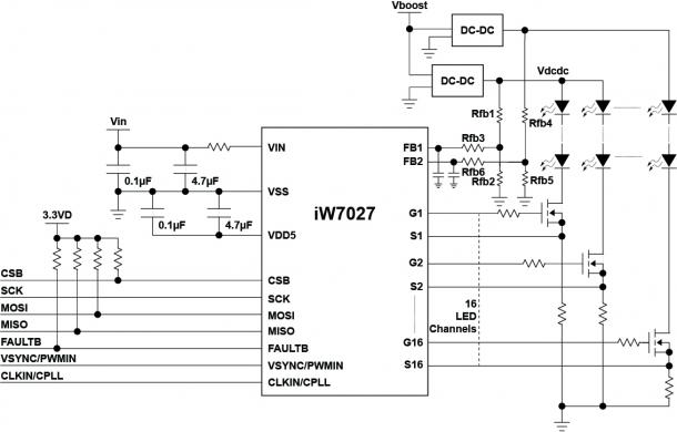 IW7027是一个16通道LED背光驱动器,可增强电视图像质量,并降低2D和3D LCD电视的BOM成本。它使用外部LED电流接收器和最多两个外部DC / DC转换器(升压,降压,LLC等),以实现易于电流和电压缩放。通过整合对话的专利宽容™技术,实现独特的2针LED开放式/短传感技术,可保护外部电流水槽,IW7027消除了对高电压传感部件的需求,并减少了所需的引脚计数,从而导致更小的较低的封装。宽容的技术还使得能够使用松散的LED阵列,进一步降低了总BOM成本。