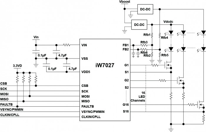 - 16通道LED驱动器控制器,每个通道无限LED电压
