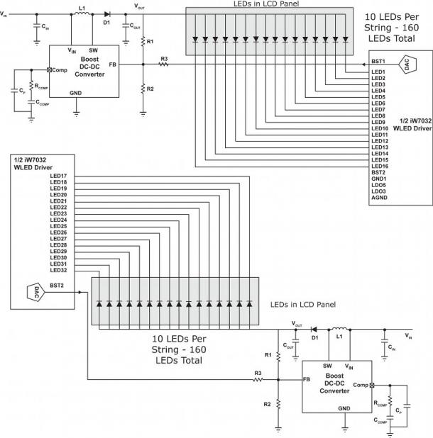 iW7032集成了32个开漏电流接收器、两个LDOs和两个外部DC/DC转换器(升压或降压)的数字控制,为液晶电视等应用中的LED背光提供了一个完整的解决方案。雷竞技安卓下载使用对话框的创新BroadLED™技术,IW7032维护通道到通道电流匹配优于2%并集成了对话的专有自适应开关技术,显着降低了LED背光应用中的功率损耗。雷竞技安卓下载