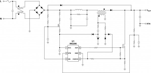 iW2206集成了输出过压、过功率、输入过压、欠压、过流、感应电阻短路保护、开环、过温保护等全系列保护功能。该设备有一个很小的SOT23-6包装,使一个更小的总溶液大小。