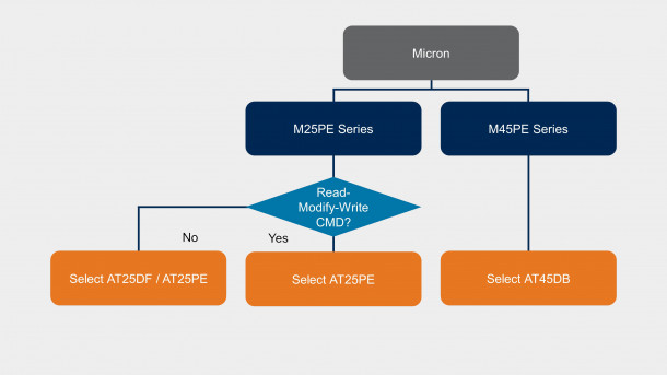 DATAFLASH (AT45 Series), DATAFLASH-L (AT25PE Series) and FUSION (AT25 Series) families offer price and long-life supply stability with exact-match pin out and performance to the Micron selection.