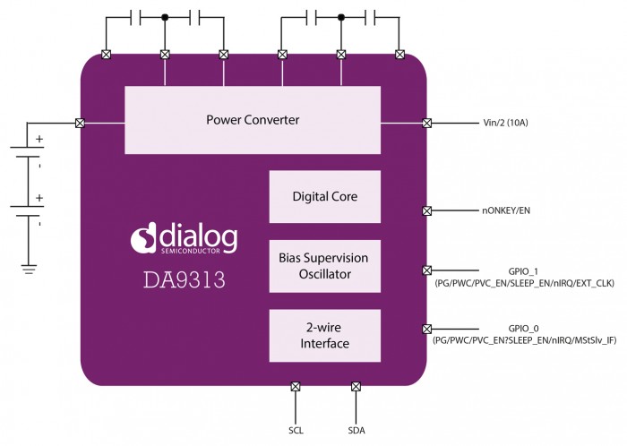 该DA9313集成业界首款无电感10A电源转换器,用于高达20A的输出电流最好的一流的效率,并提供主/从操作。高电流,在98%以上难以置信效率电感器 - 更少的功率转换器,在不到10平方毫米包大于50W供电更大。