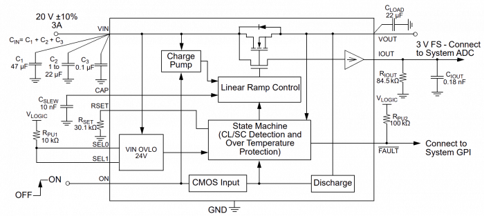 具有V的6 A,22 V,13.1MΩ集成电源开关在Lockout Select & IDS.当前监视器输出