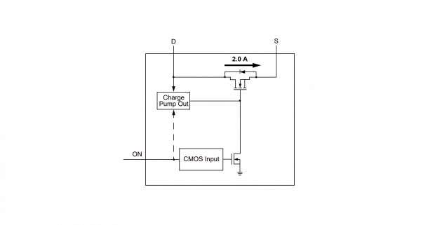 一个1mm的高压电源开关,带电荷泵,0.85 VD,保护,和4针封装