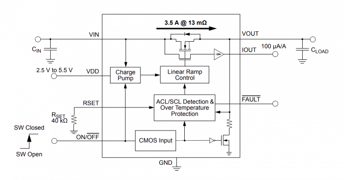 从2.5 V至5.5 V电源供电,在-40°C到125°C扩展工业温度范围内,SLG59M1707V是一个高性能的13毫欧完全指明的,3.5 A单通道的nFET集成式功率开关设计用于所有0.8 V至5.5 V电源轨的应用程序。雷竞技安卓下载以3 V / ms的固定VOUT转换速率,浪涌电流在内部限制。采用独有的MOSFET设计,SLG59M1707V实现了稳定的13毫欧[RDSON在宽输入/电源电压范围。所述SLG59M1707V还采用电阻可调的限流以及热保护。使用对话的专有CuFET™技术用于高电流操作中,SLG59M1707V封装在空间有效的,低热阻,符合RoHS规定1.6毫米×2.5mm的STQFN包。