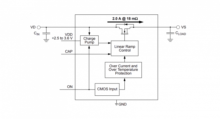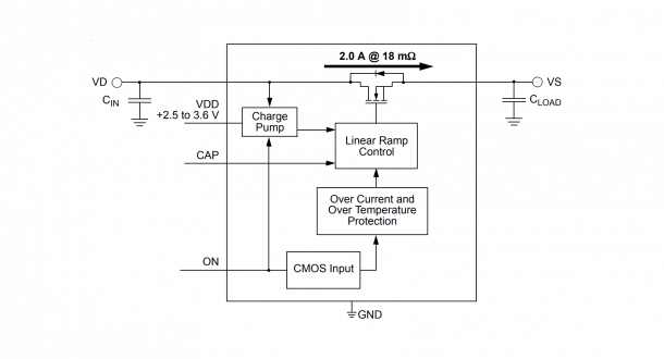 1.4mm²,18mΩ,2个集成电源开关,带有VS摆速控制,限流和热保护