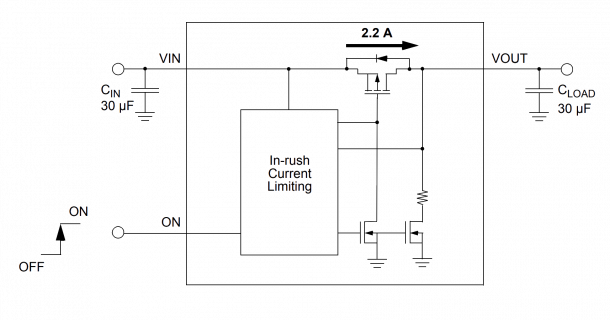 A 33毫欧,2.2 pFET的IPS与受控浪涌电流在0.64平方毫米WLCSP