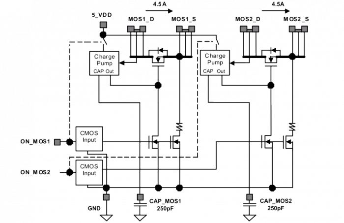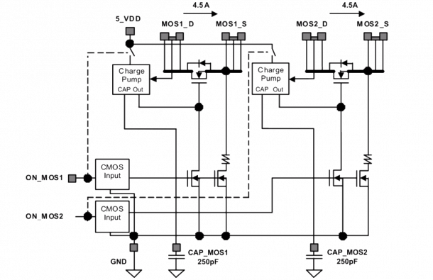 - 可以使用高达4.5A的通道,最大最大电流为8.5A
